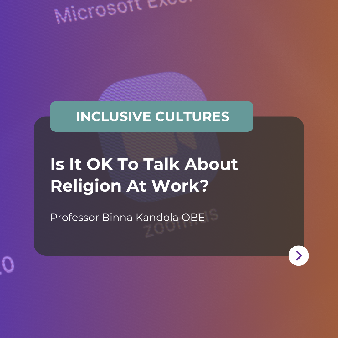 The problem with this mindset is that for someone who has faith, it is a crucial part of their identity. By feeling that they can’t talk about it, they’re having to suppress that side of themselves, and by not feeling able to bring their whole selves to work, they won’t be as content or as productive in their role. But the ultimate irony here is that, in the Pearn Kandola Religion at Work Report 2023, we have found that when people speak openly about religion it reduces bias and creates happier, more productive teams.